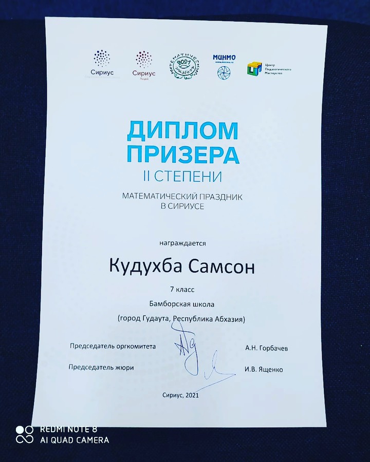 Поздравляем Кудухба Самсона, ученика 7 класса Бамборской средней школы, ставшего призером олимпиады в образовательном центре "Сириус." Желаем дальнейших творческих успехов и новых побед!