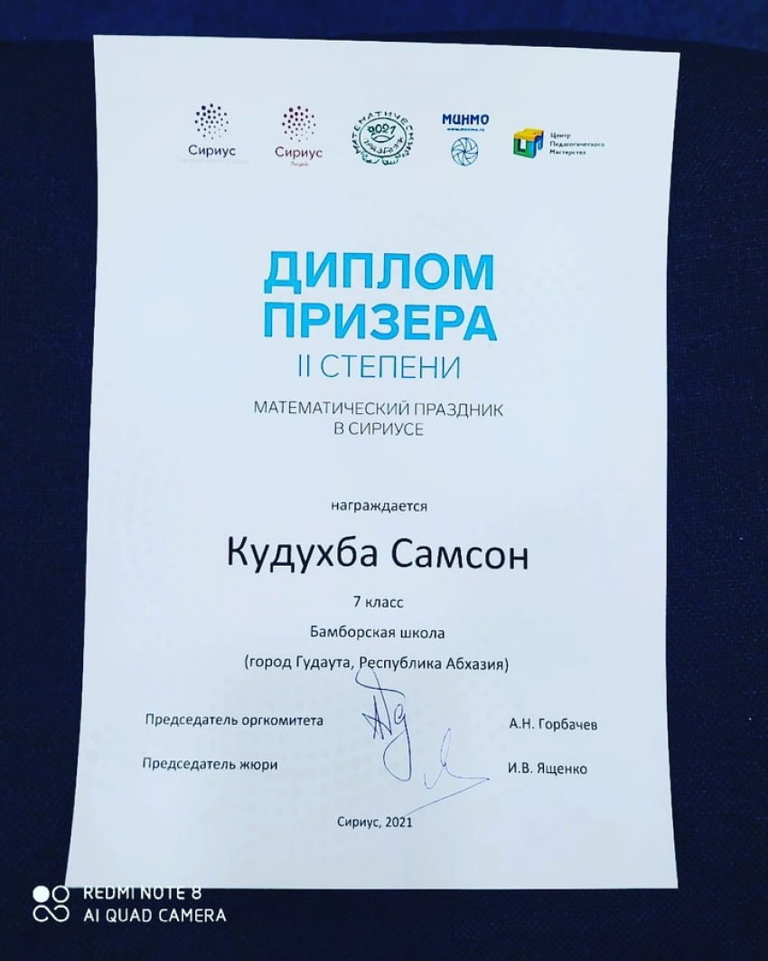 You are here:-/Новости/Поздравляем Кудухба Самсона, ученика 7 класса Бамборской средней школы, ставшего призером олимпиады в образовательном центре "Сириус." Желаем дальнейших творческих успехов и новых побед!
